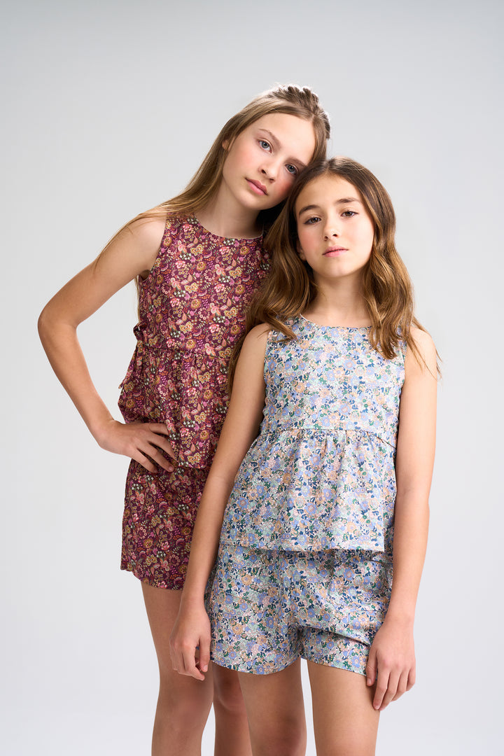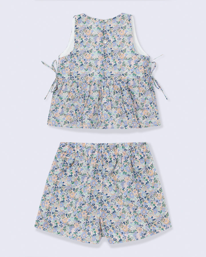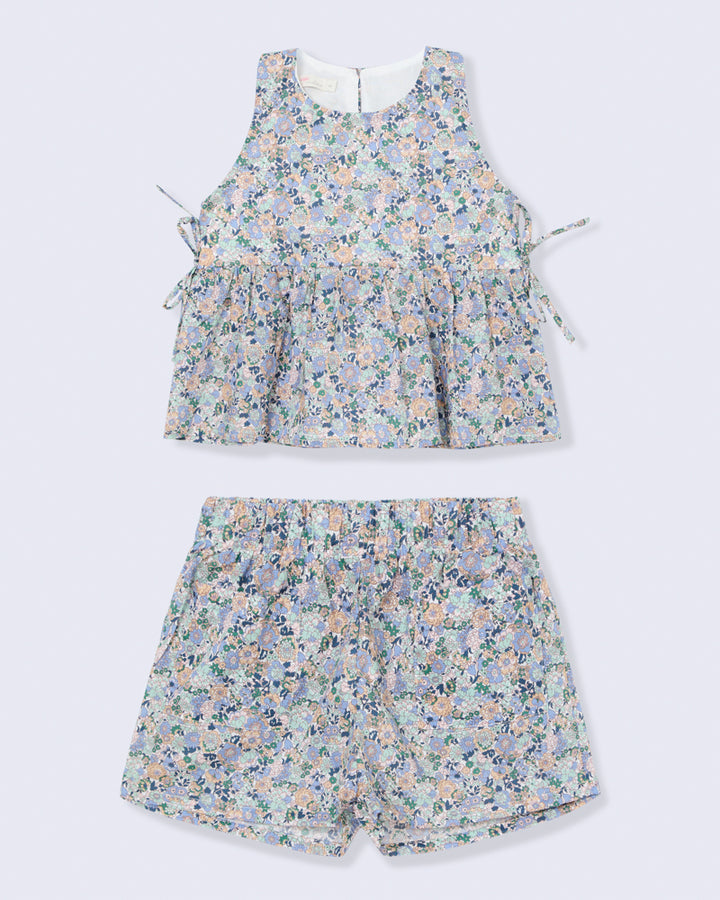 Conjunto floral composto por blusa e short, perfeito para quem busca praticidade sem abrir mão do estilo. A blusa possui amarrações laterais que trazem um charme especial e permitem melhor ajuste ao corpo. O short com elástico na cintura garante conforto e liberdade de movimento, ideal para dias ensolarados e looks casuais.